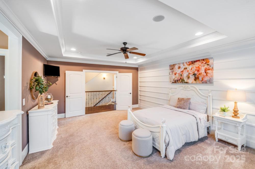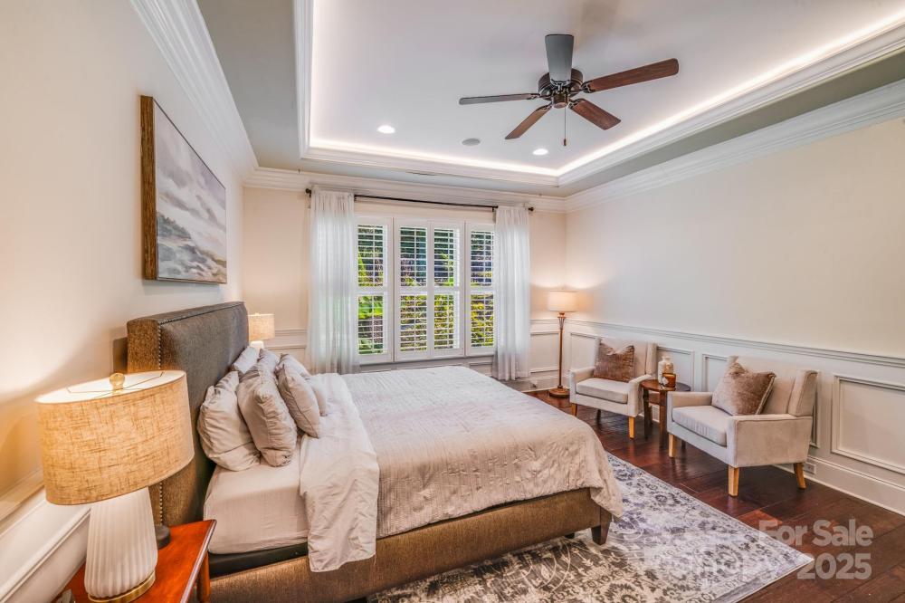 STUNNING FORMER LUXURY MODEL HOME! Rare plan with TWO primary bedrooms. Desirable European exterior with wraparound front porch. Enter through the double front doors to the home of your dreams, with 10' ceilings and breathtaking details and upgrades throughout. To your right, slide the double doors open to enter the spacious office with color drenched accent walls. To your left is the majestic dining room with an accent wall that leads your eye up to the gorgeous uplit coffered ceiling. Ahead lies the heart of the home where the large family room and the expansive kitchen come together. The perfect built-ins flank the stone fireplace that sets the tone for those family movie nights. The kitchen boasts floor-to-ceiling cabinetry, an oversized island featuring dbl granite, a 42" 6-burner gas stove with a custom vent hood, and a roomy breakfast area. Located off of the family room is the pièce de résistance: a massive tri fold glass door that opens up to the screened-in porch with gas fireplace, truly epitomizing indoor/outdoor living. The primary bedroom overlooks the back yard greenery with a substantial en suite, as well as, a laundry closet. Upstairs, the massive bonus room is the perfect place to host game nights. The secondary bedrooms are all generous in size. The laundry room is conveniently located to the upper bedrooms. The vast third floor bedroom and full bath are easily accessible yet offer tremendous privacy, too. Located within top-rated Fort Mill schools with a perfect location near Lake Wylie, Baxter Village, and local parks, this beautiful home is special. If you're searching for a dreamy lifestyle of elegance, convenience, and comfort, this home is for you!