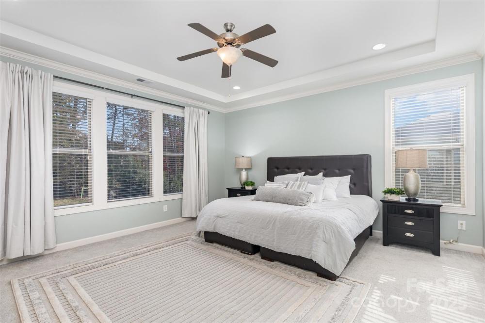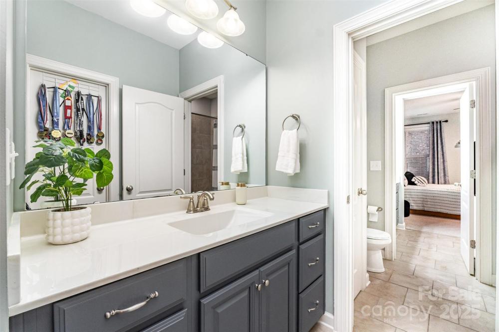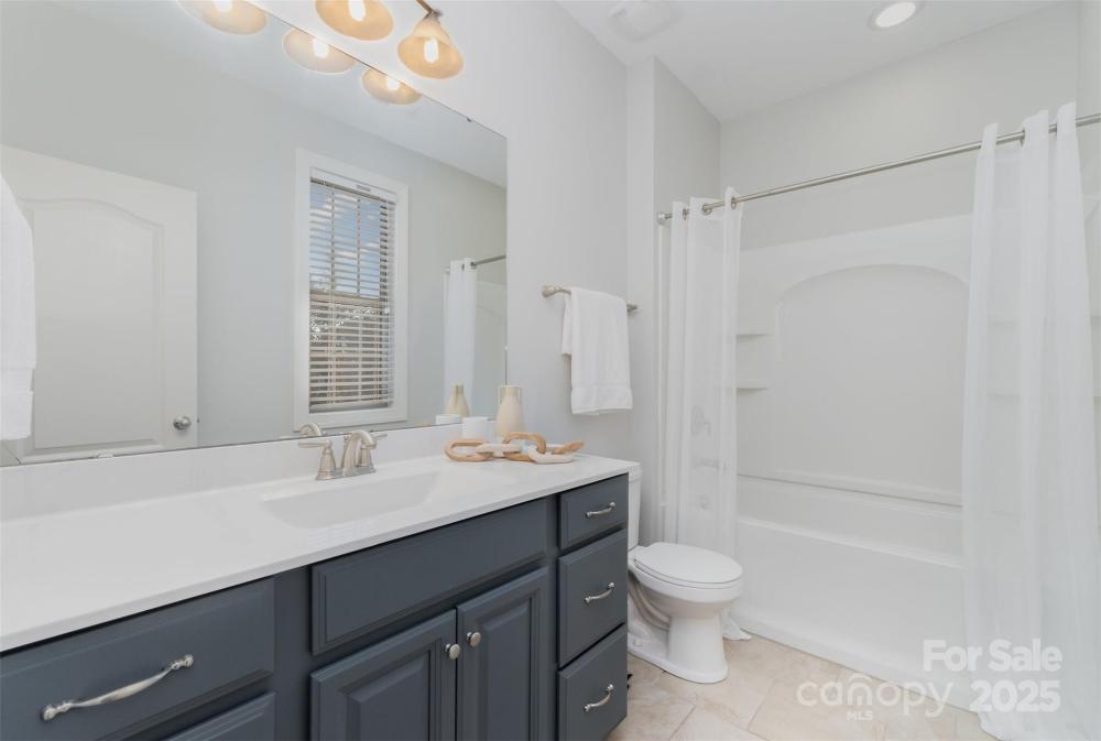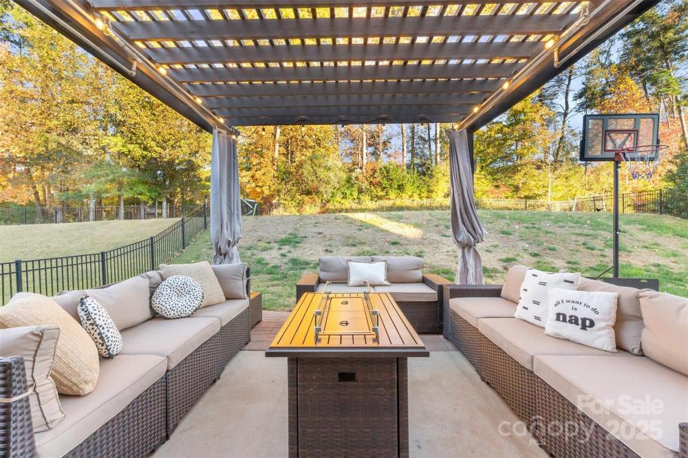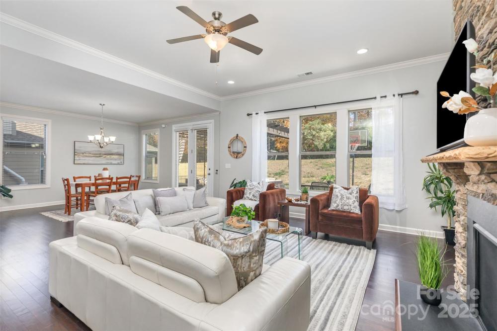 Sophisticated and beautifully maintained, this home blends modern elegance with everyday comfort. Nestled in the sought-after Lake Ridge community with resort-style amenities, active social events, andawar wining schools. Convenient to shopping, dining, I-485, airport, Catawba Park, and Lake Wylie (FUN)- this home offers an exceptional lifestyle in a premier location. The covered front porch and two-story foyer welcome you into bright, open living spaces with hardwood floors and 9-ft ceilings. The gourmet kitchen with white cabinetry, granite counters, stainless appliances, and a spacious island flows seamlessly into the breakfast area and great room with a stunning floor-to-ceiling stacked stone fireplace—perfect for gatherings and entertaining. A main-level bedroom and full bath offer flexibility for guests or office use. Upstairs features a large bonus room with custom barn doors, Jack-and-Jill bath with dual vanities, a private ensuite, and generous bedrooms—all with walk-in closets. The primary suite is a true retreat with tray ceiling and spa-like bath. The oversized epoxy-floored garage with built-ins provides ample storage. Enjoy outdoor living on the extended patio with pergola overlooking a fenced, terraced backyard with a level play area and mature trees—a private retreat ideal for relaxation or play. Welcome home!