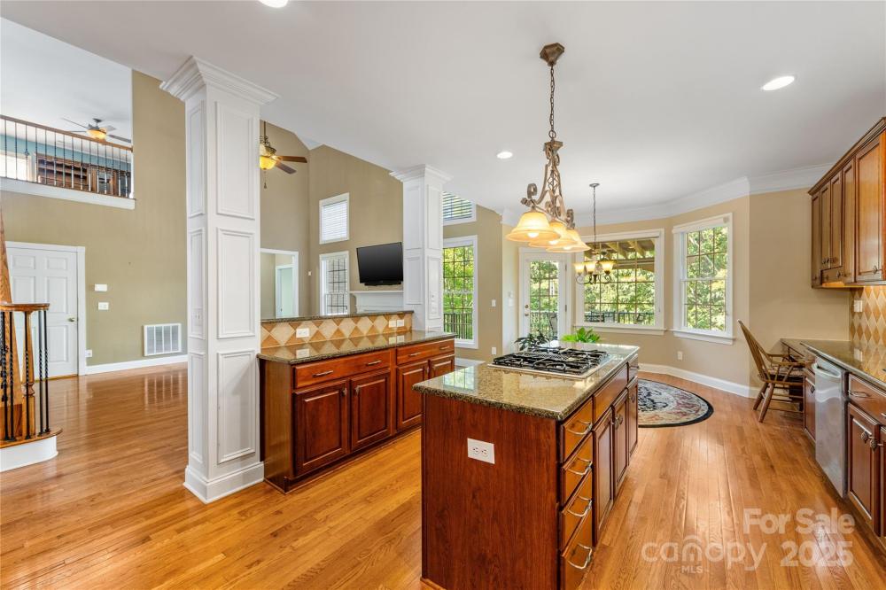 Welcome to this spacious and beautifully crafted brick basement home with second living quarters at Lakeshore in Tega Cay! This amazing home features a two-story great room with gas fireplace. Wood floors throughout most of the home. Large eat in kitchen with beautiful solid wood cabinetry, gas cook top on center island, built in double oven, granite counter tops, and stainless appliances. Breakfast area has computer nook/desk and overlooks the covered deck and professionally landscaped back yard. Dedicated office has floor to ceiling-built ins. Desirable main-floor primary bedroom is complete with a large ensuite which offers both a separate shower and soaking tub, perfect for unwinding and a generous walk-in custom closet. Upstairs you will find a huge loft perfect for video games or movie night, four more bedrooms plus two more full jack and jill bathrooms! Laundry room on main floor and another one in second living quarters. Driveway is oversized to fit all of your vehicles!! The second living quarters is perfect for a mother-in-law suite, guests or a family member who wants privacy. The space features vinyl plank flooring, a large living room, big kitchen nook, full bathroom, a good size bedroom and laundry room. The back door leads to a custom patio. This home perfectly blends comfort, convenience, and timeless elegance—don’t miss your chance to make it yours! House has been pre inspected with repairs complete. HVAC 2025 and 2019 Roof 2020 Tankless water heater Both refrigerators convey Washer/Dryer convey (both sets)