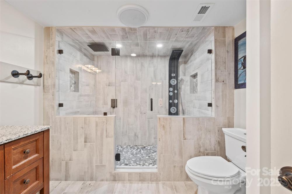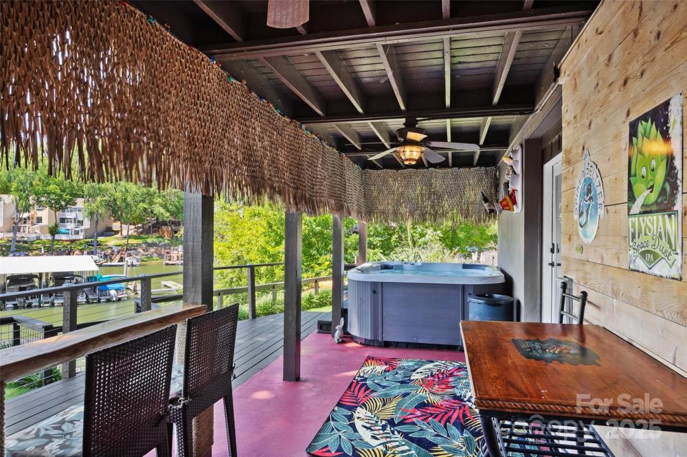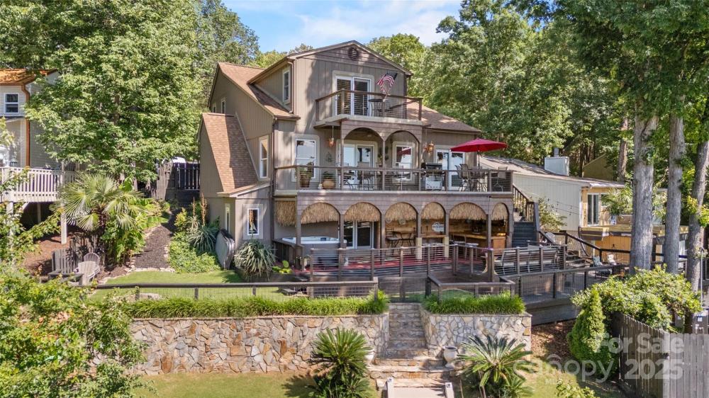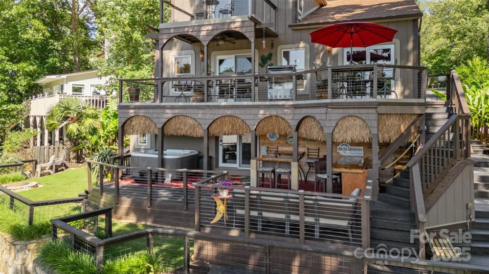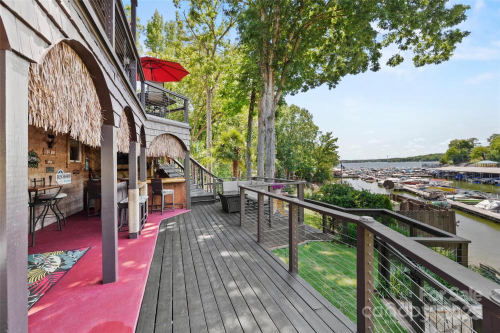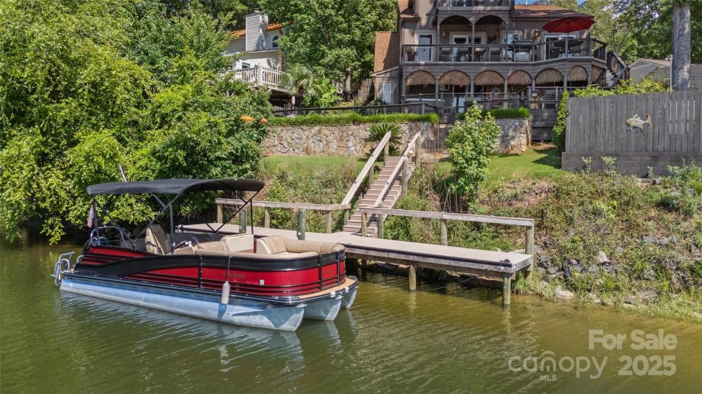 With sunset views looking out onto Lake Wylie from a private cove, this waterfront home is truly a slice of paradise! Outdoor entertaining spaces galore incl a Barefoot hot tub & custom built bar, 2 addl levels of decks w/ cable railing to take advantage of the views, stone fire pit w/ a fenced lawn area & rock retaining wall, & last but not least, a new PERMITTED private dock w/ composite decking. The same theme of thought & care was put into the inside, incl a complete kitchen remodel w/ details such as custom wood beams & luxury plank Pergo flooring that runs throughout the main. The primary suite boasts a private deck, & bath will leave you speechless - completely redone to incl an enormous walk-in dual shower & tub area w/ river rock, skylight, dual sinks, & more. The basement is a walk out providing tons of natural light, & fully remodeled bath w/ spa shower. No expense was spared making this home ready for you to move right in! Video: https://www.youtube.com/watch?v=XufO7SpdI9w